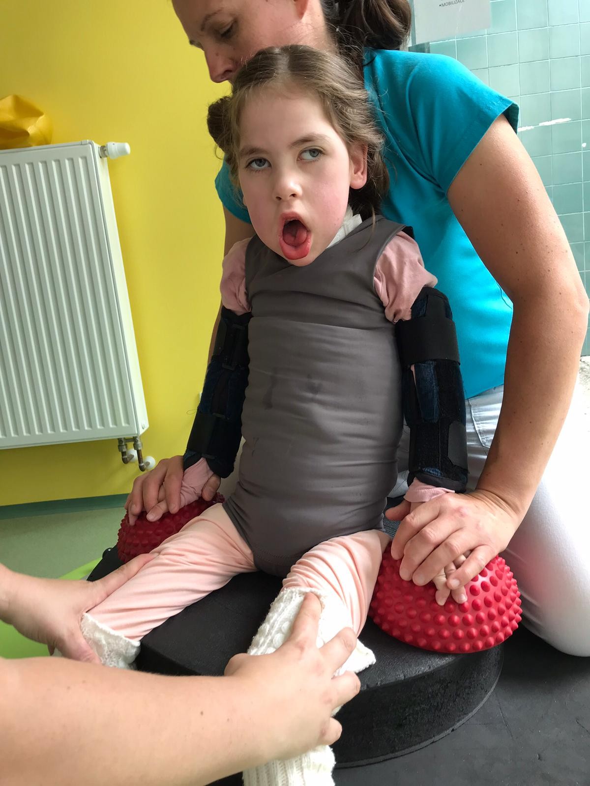 Rodičom sa podarilo vďaka masírovaniu a cvičeniam Emmku rozhýbať. Vďaka nespočetným rehabilitáciám sa Emmka po prvýkrát, aj keď s oporou, postavila na nohy. Doma cvičí každý deň s kladkami a závažím. Keďže sú tieto špeciálne rehabilitácie veľmi nákladné, rodičia sa snažia nasimulovať rehabilitačné prostredie, ktoré poznajú z Klimkovíc v Českej republike, kde s Emmkou cvičili.